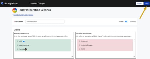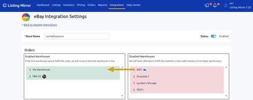 Drag the WMS Warehouse into the Enabled Warehouses box.