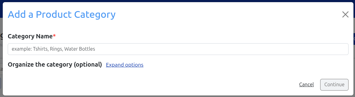 (Optional) Click **Expand options** under *Organize the category* to nest the category under a parent.